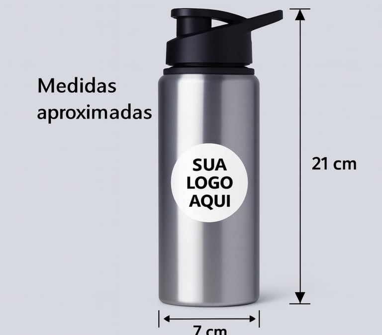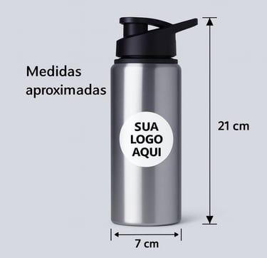 Garrafa Squeeze de água 600ml metal alumínio inox prata preto